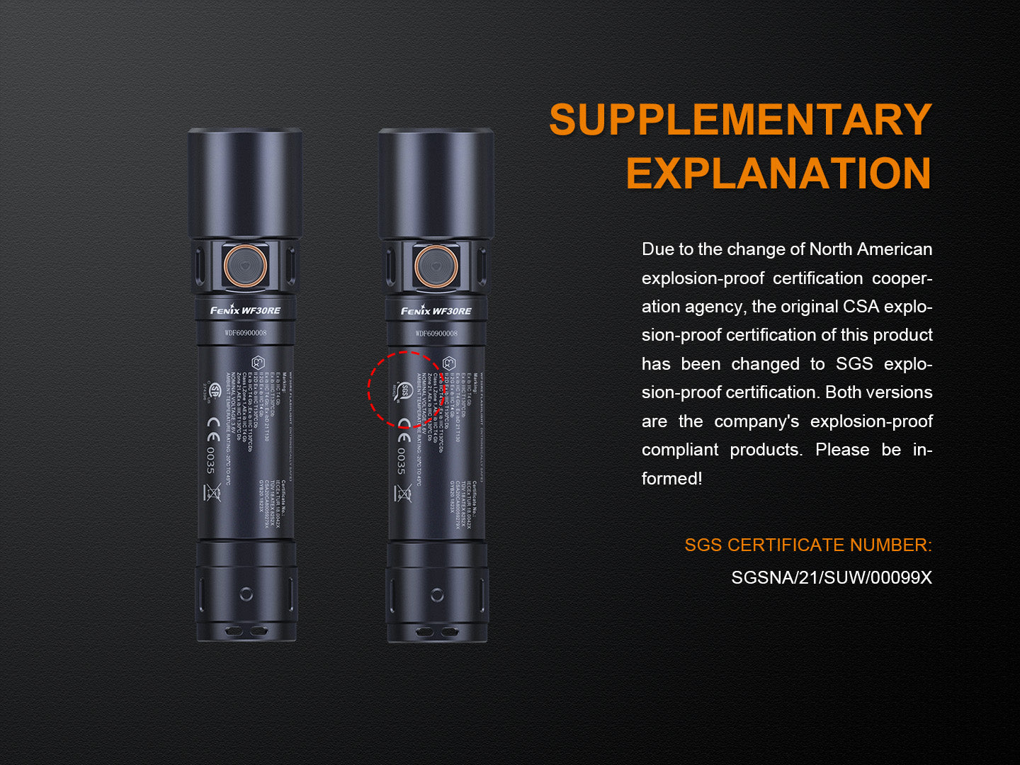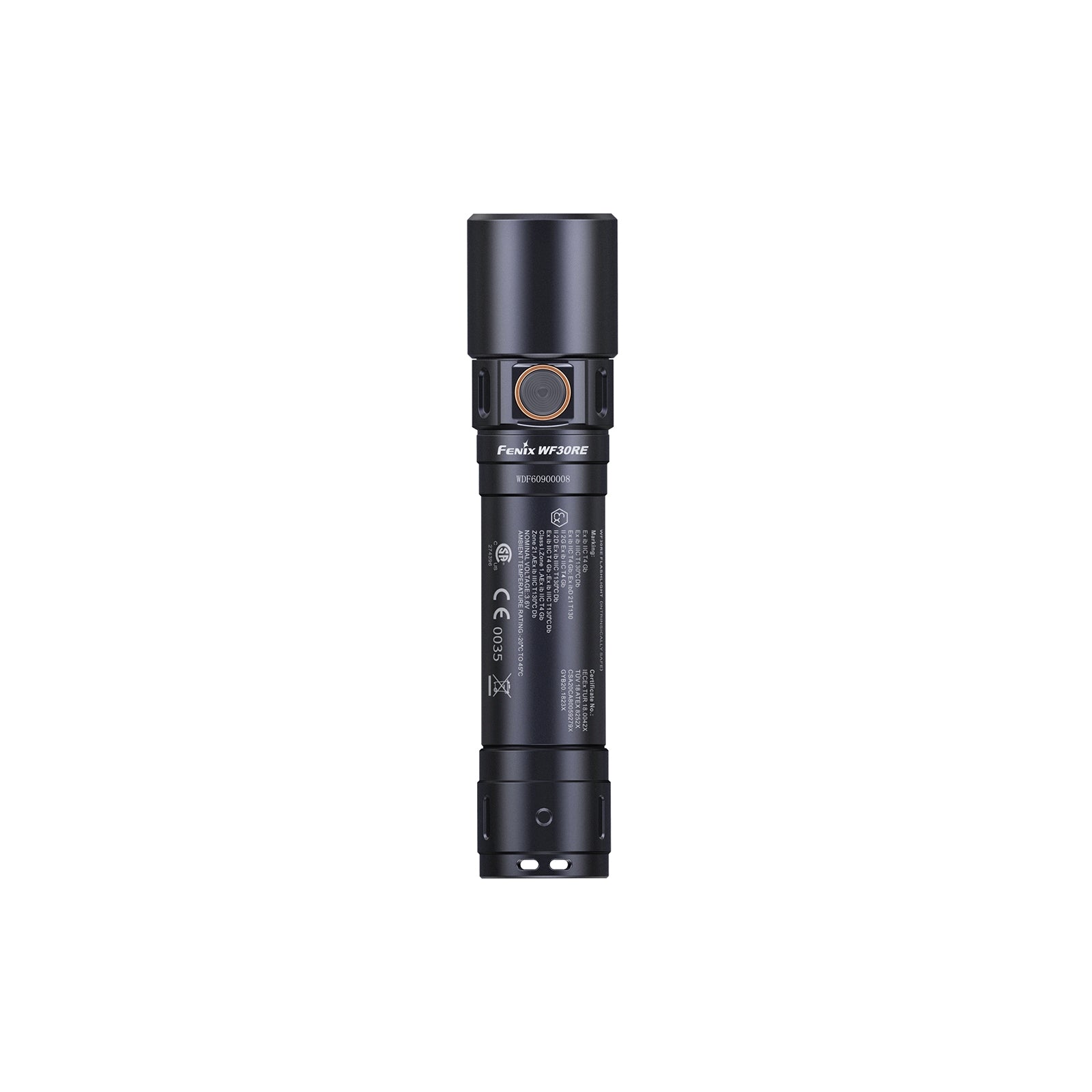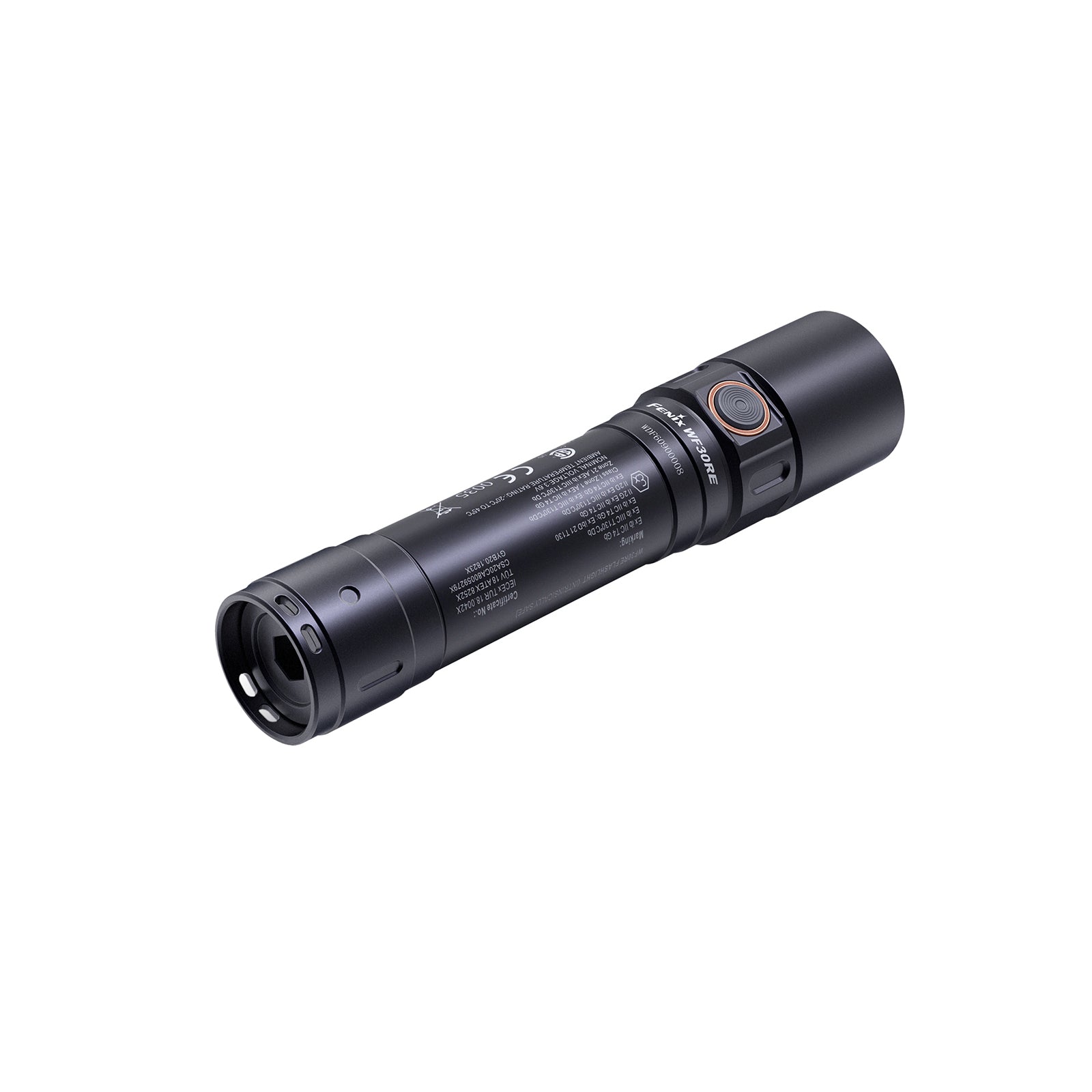 The Fenix WF30RE is an intrinsically safe flashlight certified by IECEx, ATEX, SGS and NEPSI.